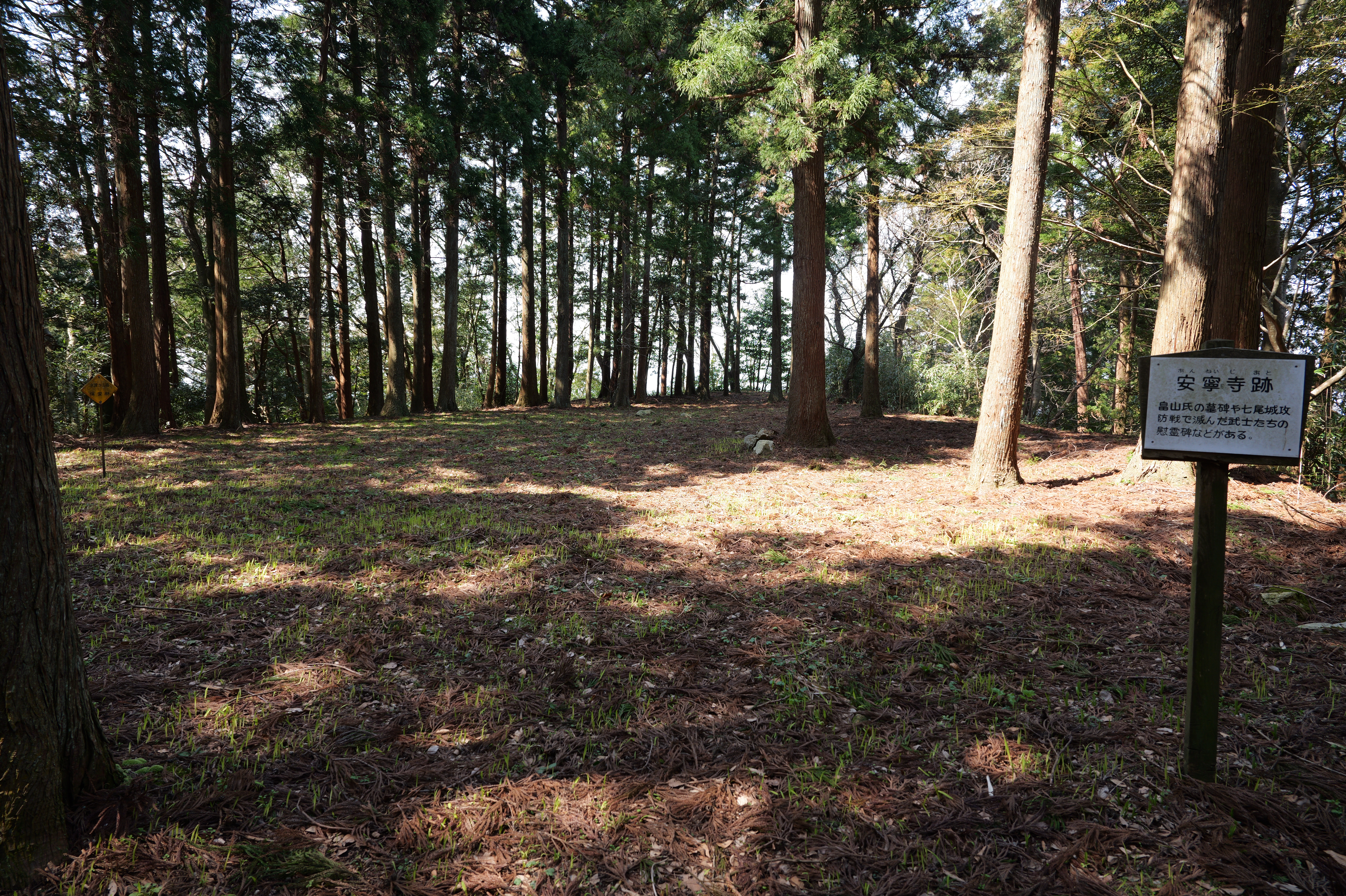 袴腰の西側一段さがったところが安寧寺跡で、畠山氏の墓碑や七尾城攻防戦で滅んだ武士たちの慰霊碑などがあります。