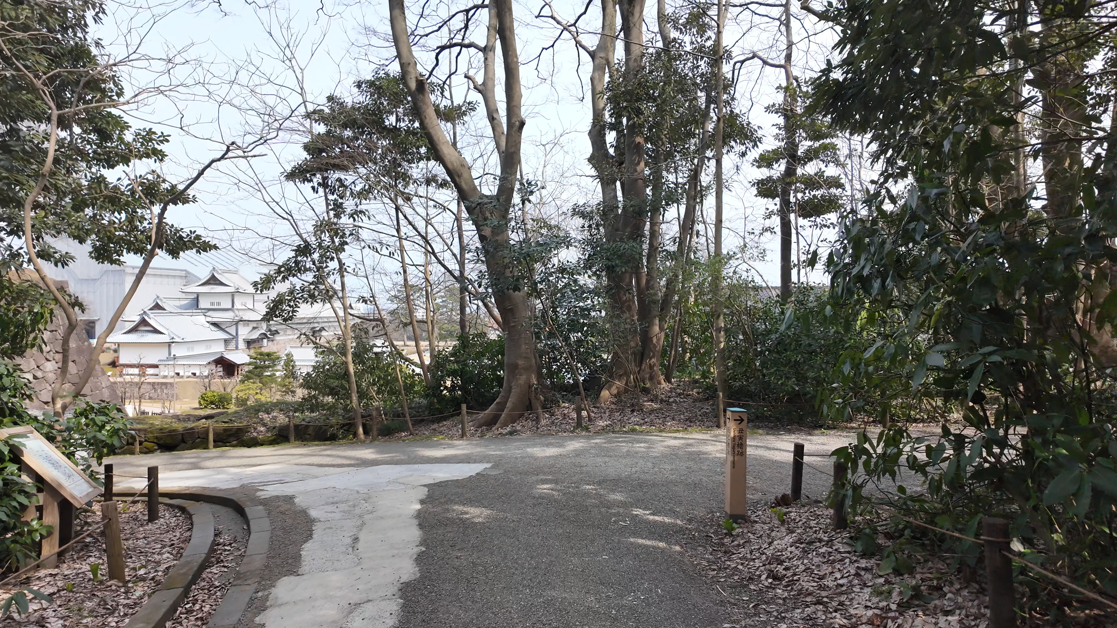 →鶴丸倉庫→鶴の丸広場→土塀構造の紹介→井戸の枠→河北門→新丸広場→大手門跡→大手堀→黒門→湿生園→土橋門跡→切手門→数寄屋敷石垣跡→内堀→紅葉橋跡→鼠多門→玉泉院丸庭園→石垣回廊→いもり堀→高石垣→鯉喉櫓台→駐車場