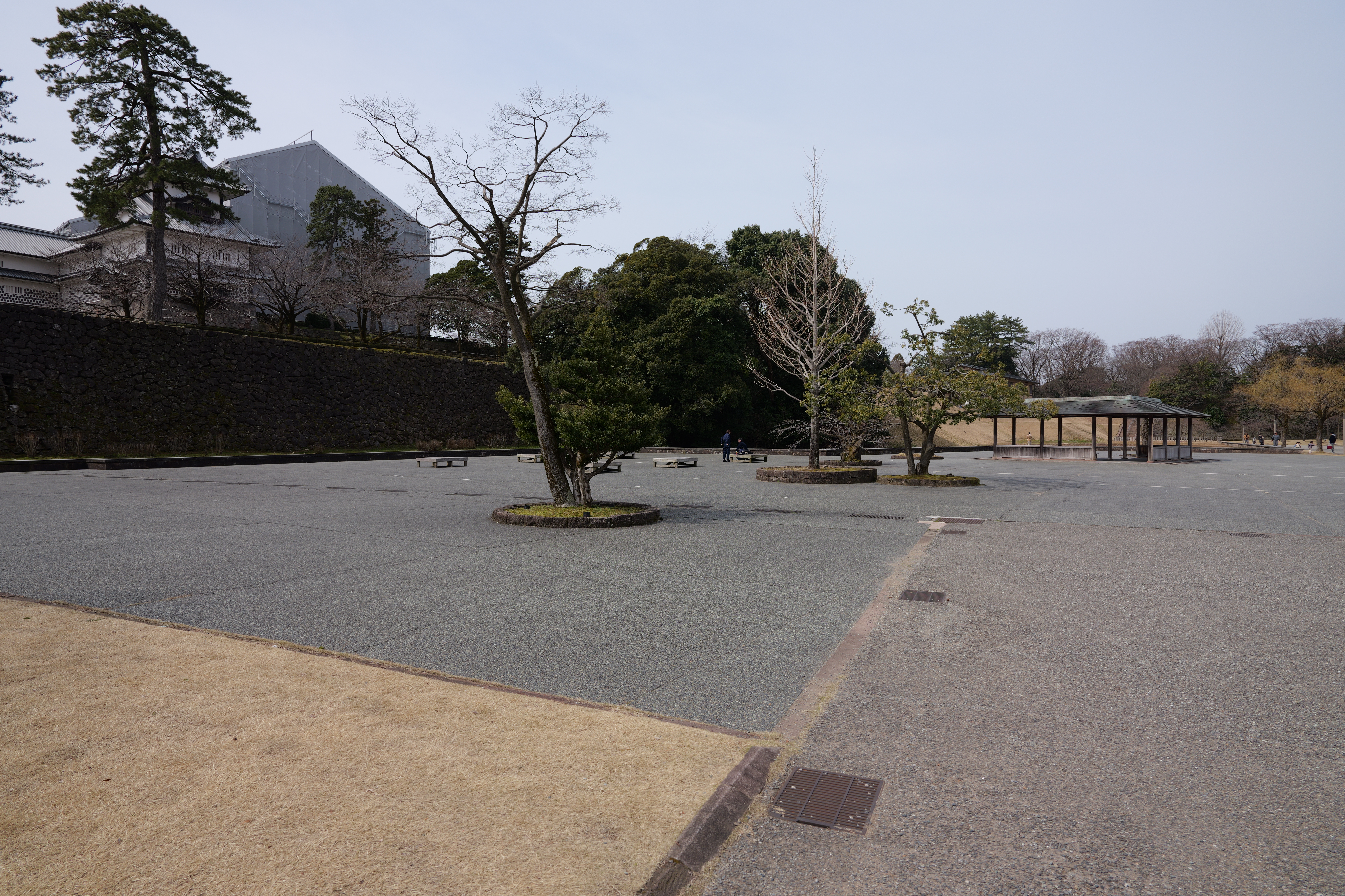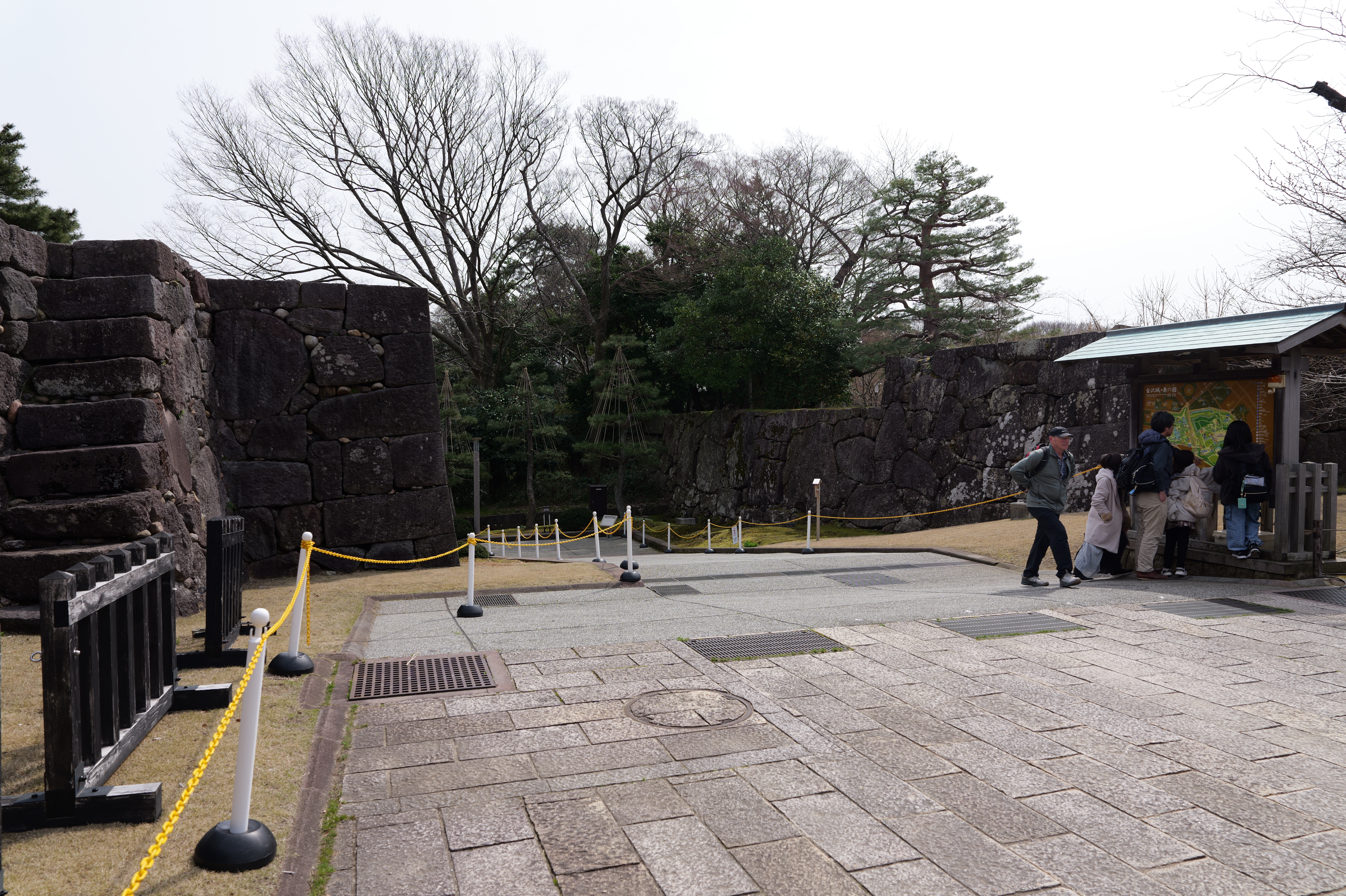 河北門から新丸へ。新丸は広大な広場になっています。東側は藩の重臣の屋敷、西側は作事所や下台所などの役所があったとされます。
